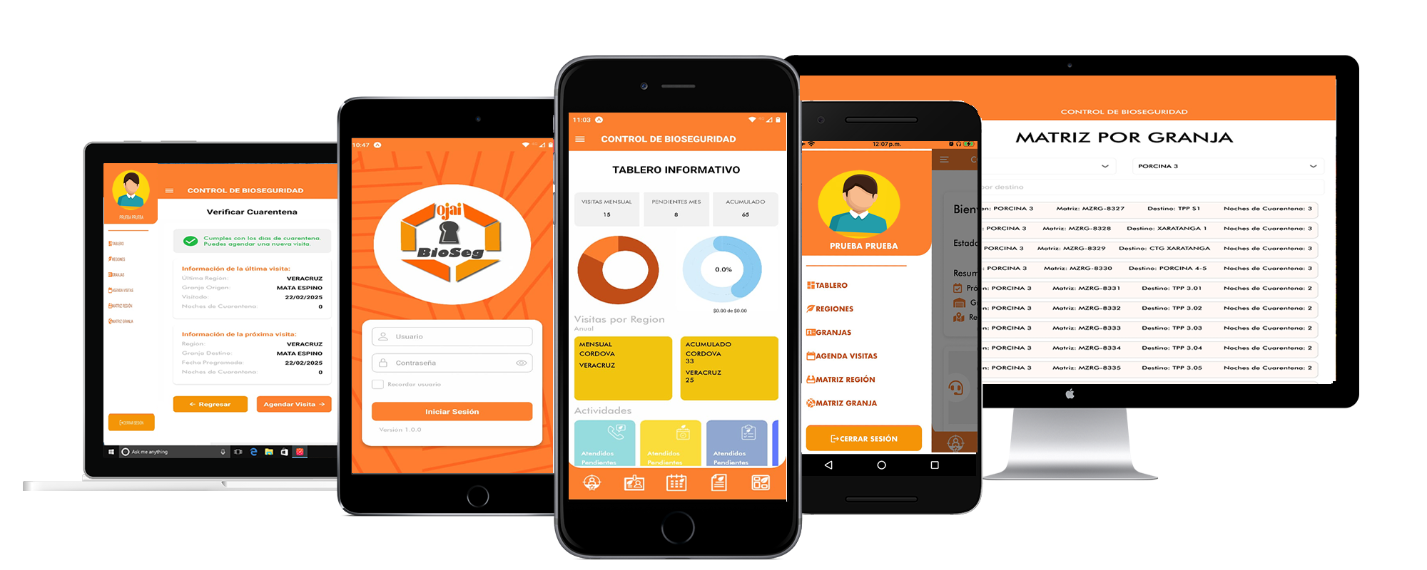 BioSeg es una solución especializada para el control de acceso de veterinarios en granjas porcinas, asegurando el cumplimiento de normas de bioseguridad y la gestión eficiente de tiempos de cuarentena.
